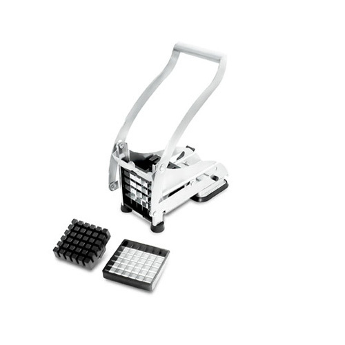 En robust Pommes maskin med suganordning i basen som gör att den står still på släta ytor. 3 st olika storlekar på knivar följer med. Perfekt när man ska göra pommes, gurkstavar osv.