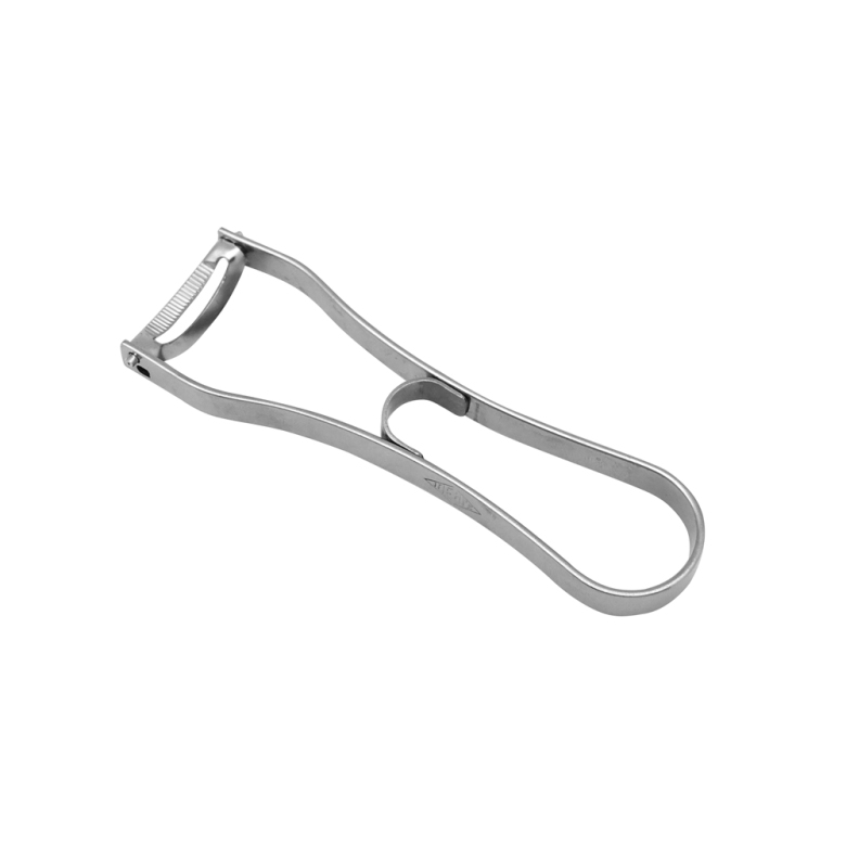 Sparris- och morotsskalaren i rostfritt stål är ett verktyg med exklusiv design med ett böjt och vasst blad perfekt för att snabbt och exakt skala sparris och morötter samtidigt som den rundade formen på dessa grönsaker bibehålls.
