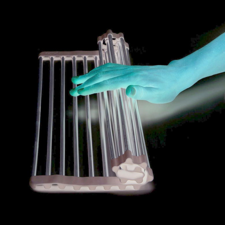 Ett smart diskställ där man placerar det över diskon för att skapa ytterligare en torkyta och vattnet droppar naturligt ner i botten på diskhon. Kan rullas ihop lätt för enkel förvaring.