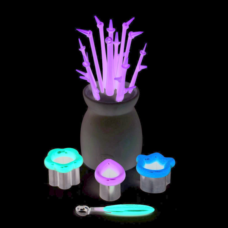 Skapa en ätbar bukett av frukter. Innehåller tre urstansare i olika former, en urgröpare, 11 st pinnar samt en vas.