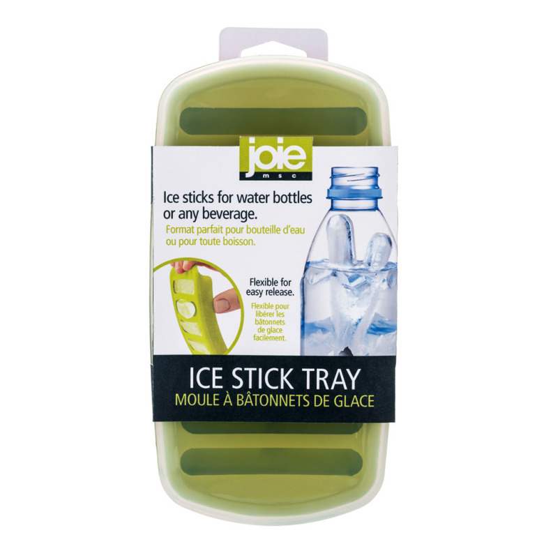 Isbricka av silikon med tättslutande lock för spillfri hantering. Isbitarna är smala långa stickor som är lätt att få ner i vattenflaskor. Säljs i sorterade färger.