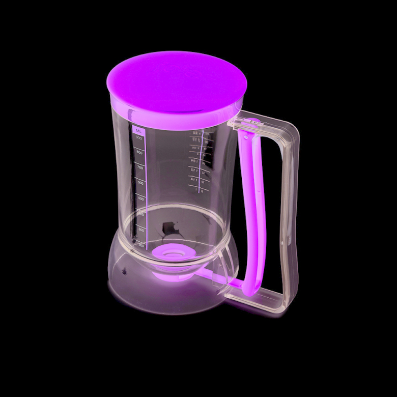 Minska kladdet och fördela smeten enklare med denna dispenser på 900ml. Öppna locket och fyll på smeten, tryck in handtaget och släpp ut smeten till önskad mängd. Pannkakor, muffins, våfflor mm. Graderade mått på sidan i ml, cupc och OZ. Kan diskas i diskmaskin.