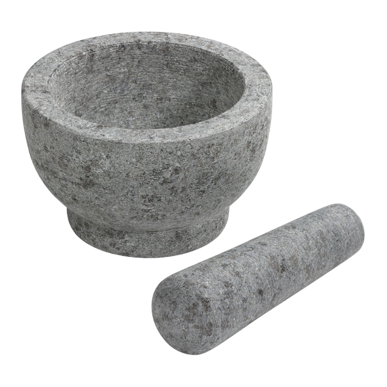 Tala Mortel och stöt av granitsten. Frigör maximal smak och arom från örter och kryddor. Mortla vitlök, ingefära, frön och chili för curryrätter och guacamole. Krossa basilika, vitlök och pinjenötter för att göra hemlagad pesto. Storlek mortel: 13 x 8 cm Storlek stöt: 14 cm lång