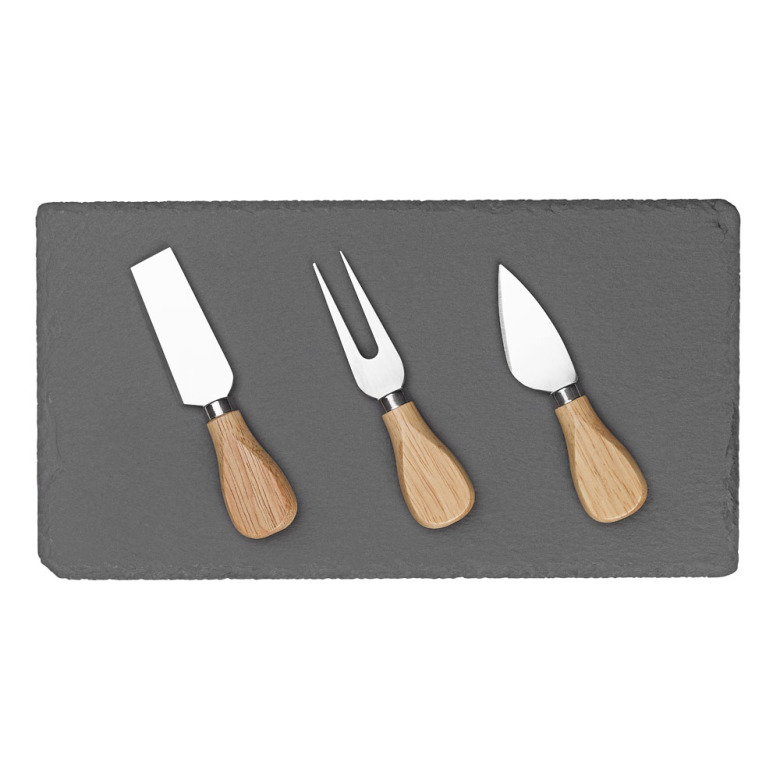 Tala Ostbricka av skiffer med 3 ostverktyg