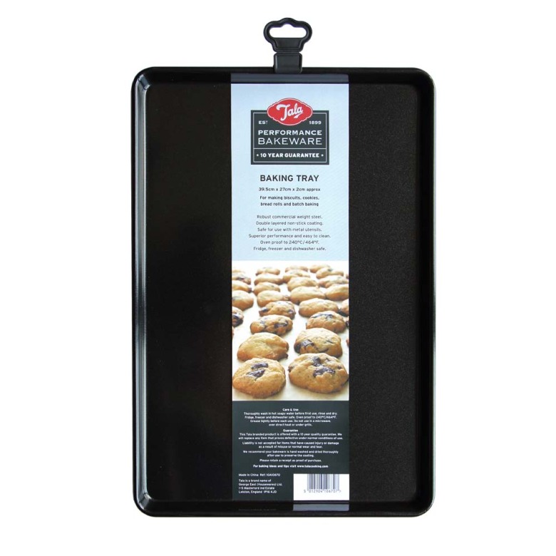 Bakplåten är en del av Tala Performance Bakeware. Serien är belagd med dubbla lager av "Premium Whitford Eclipse Coating". Detta innebär att produkten kan användas med metallredskap och levereras med en tio års garanti. Den tål kyl, frys och diskmaskin. Tala Performance är den bästa non-stick serien på marknaden.