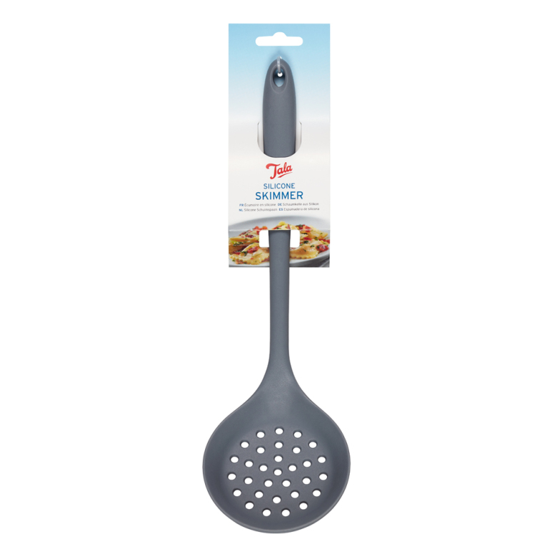 Tala Silkon Hålslev är perfekt för att skumma av sylt, buljonger och soppor! Har ett halkfritt grepp. Funkar även perfekt för att lyfta ur kött, fiskeller grönsaker ur kärl men ändå låta vätskan vara kvar i kärlet.