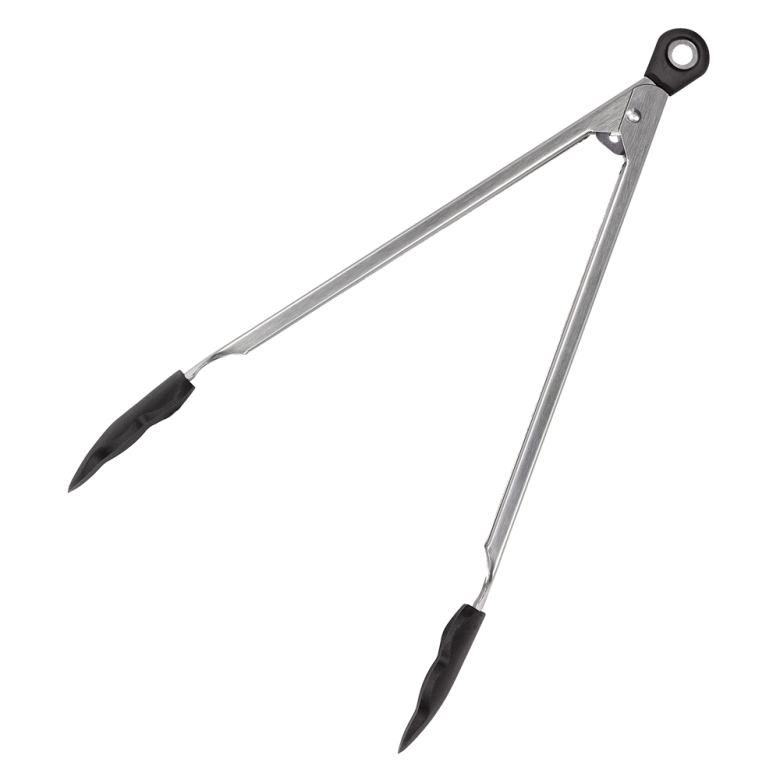 Denna tång är låsbar för enkel förvaring. Fjäderbelastad för enkel användning. De värmebeständiga silikongreppen är lätta att rengöra.